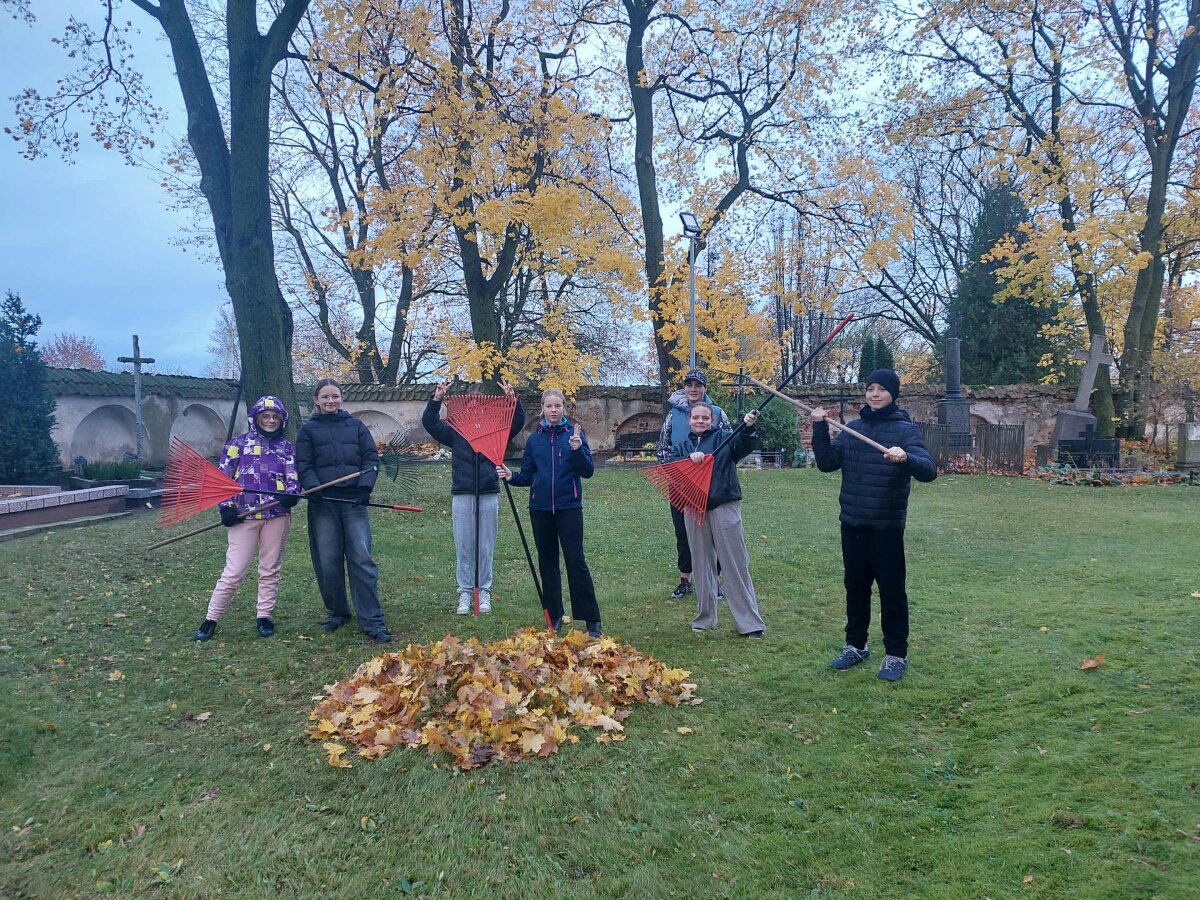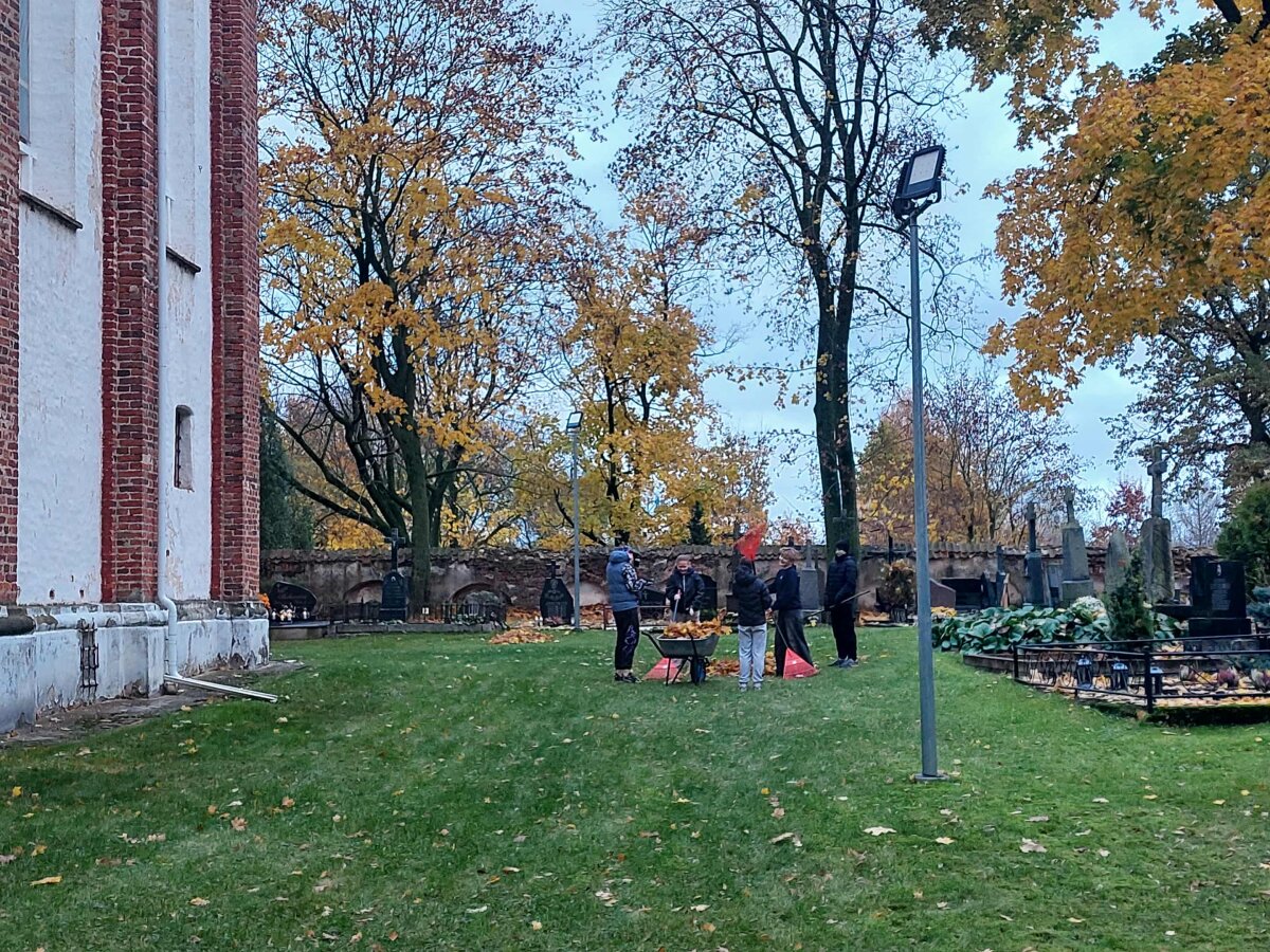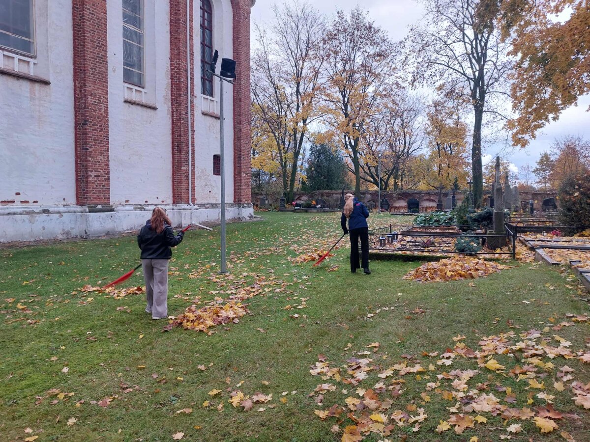Ištaikę popietę be lietaus spalio 29 d. Jonavos Raimundo Samulevičiaus progimnazijos 7a klasės mokiniai su auklėtoja I. Zvicevičiene pratęsė lapų grėbimo tradiciją Skarulių bažnyčios šventoriuje. Nors pūstelėjus vėjui lapai vėl krenta, bet klasės bendruomenė nemažai jų sugrėbė. Visi ne tik darbavosi, bet ir aplankė bažnyčią, kuri skaičiuoja jau penktąjį šimtmetį.