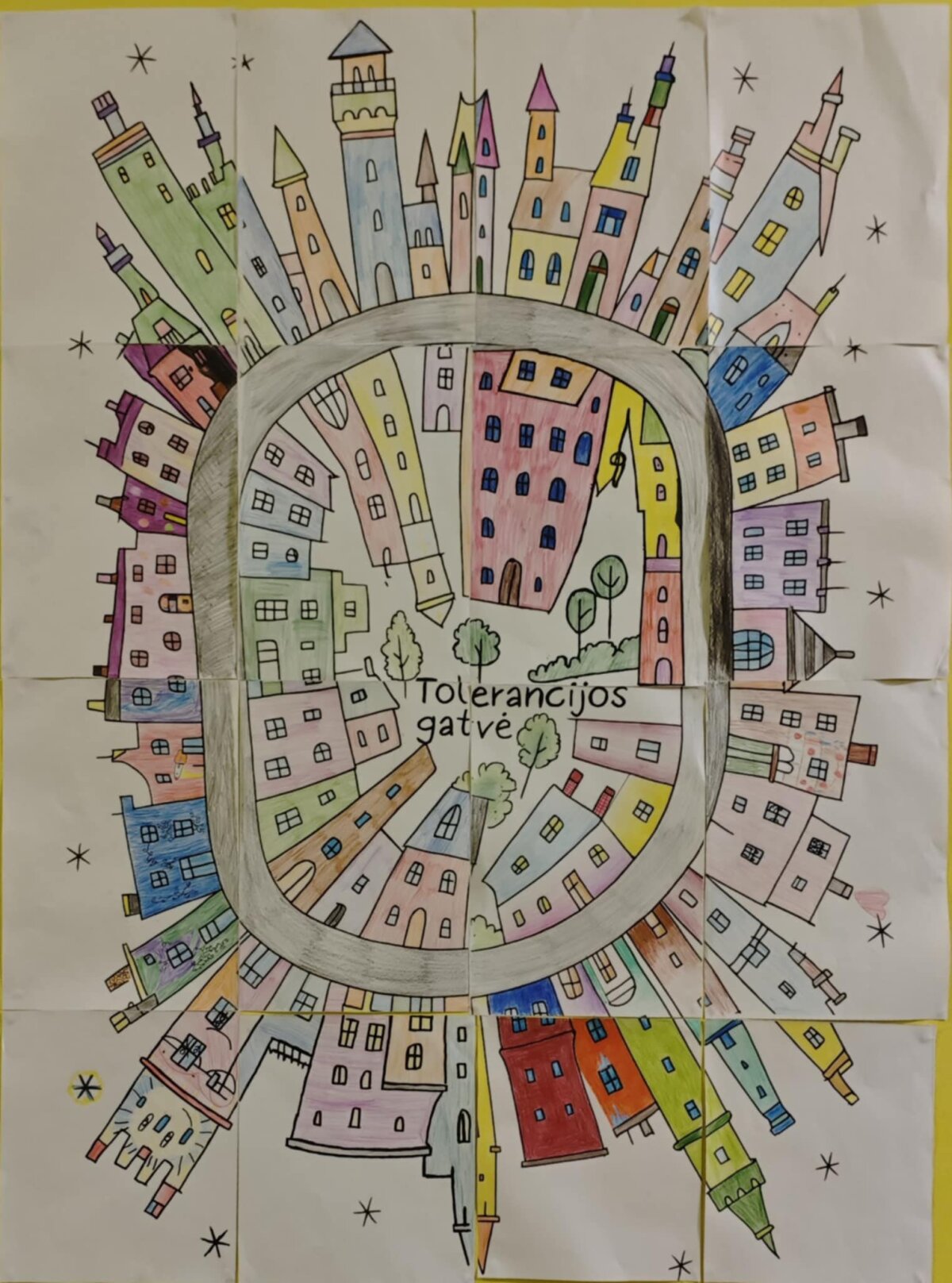 Progimnazijoje paminėta Tarptautinė tolerancijos diena, akcentuojant tarpkultūrinio sąmoningumo ir socialinės įtraukties svarbą šiuolaikinėje visuomenėje. Šių metų minėjimo simbolis - Tolerancijos gatvė, atspindinti skirtingų asmenų tarpusavio supratimo ir bendrabūvio principus. Dalyvaudami veiklose, dalis mokinių kūrė simbolines gatves, kuriose gyvena įvairių kultūrų, socialinių grupių ir skirtingų vertybinių orientacijų žmonės. Kita mokinių grupė modeliavo pasaulinę gatvę, atskleidžiančią įvairių kultūrinių bruožų sąveiką. Šie kūrybiniai sprendimai skatino mokinius analizuoti tolerancijos reiškinį kaip socialinį procesą. Iniciatyva prisidėjo prie gilesnio supratimo apie pakantos, empatijos ir įvairovės svarbą.