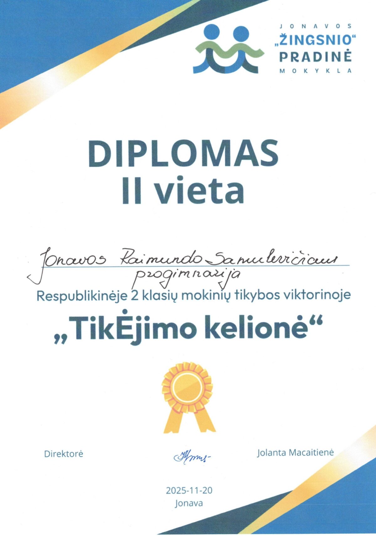 Lapkričio 20 d. antrokų komanda dalyvavo respublikinėje bendrojo ugdymo mokyklų 2 klasių mokinių tikybos viktorinoje "TikĖjimo kelionė" ir užėmė antrąją vietą!