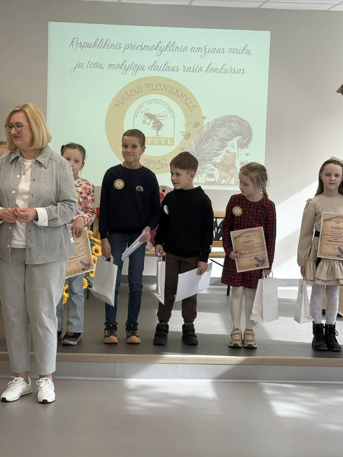 Kovo mėnesį Jonavos lopšelis-darželis “Bitutė“ tradiciškai organizuoja respublikinį priešmokyklinukų, jų tėvų ir mokytojų dailaus rašto konkursą “Mažoji plunksnelė 2026”. Šiemet konkursas skirtas A. A. Milno knygos “Mikė Pūkuotukas” 100 metų jubiliejui. Mūsų klasei atstovavo Adas Ginevičius. Gera nuotaika, susitikimas su draugais, mokytojomis nesutrukdė puikiai atlikti užduotį.