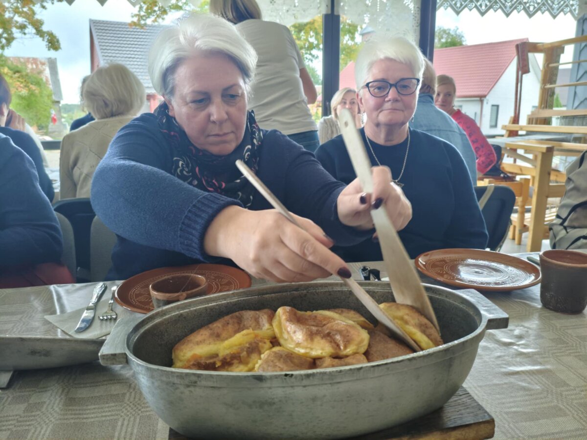 Mūsų mokyklos mokytojai - esami ir buvę- Tarptautinės mokytojų dienos išvakarėse leidosi į smagią ir skonių kupiną kelionę: dalyvavo edukacijoje Žaslių tradicinių amatų centre, kur susipažino su vienu iš unikaliausių krašto kultūrinio paveldo patiekalų - kaišiadorietiškais kakorais. Jaukioje aplinkoje netrūko nei bendrystės, nei gero ūpo: klausėmės pasakojimų apie senąsias tradicijas, bulvinių patiekalų ypatumus. Išvykome su pasiryžimu branginti savo materialaus ir nematerialaus paveldo tradicijas.