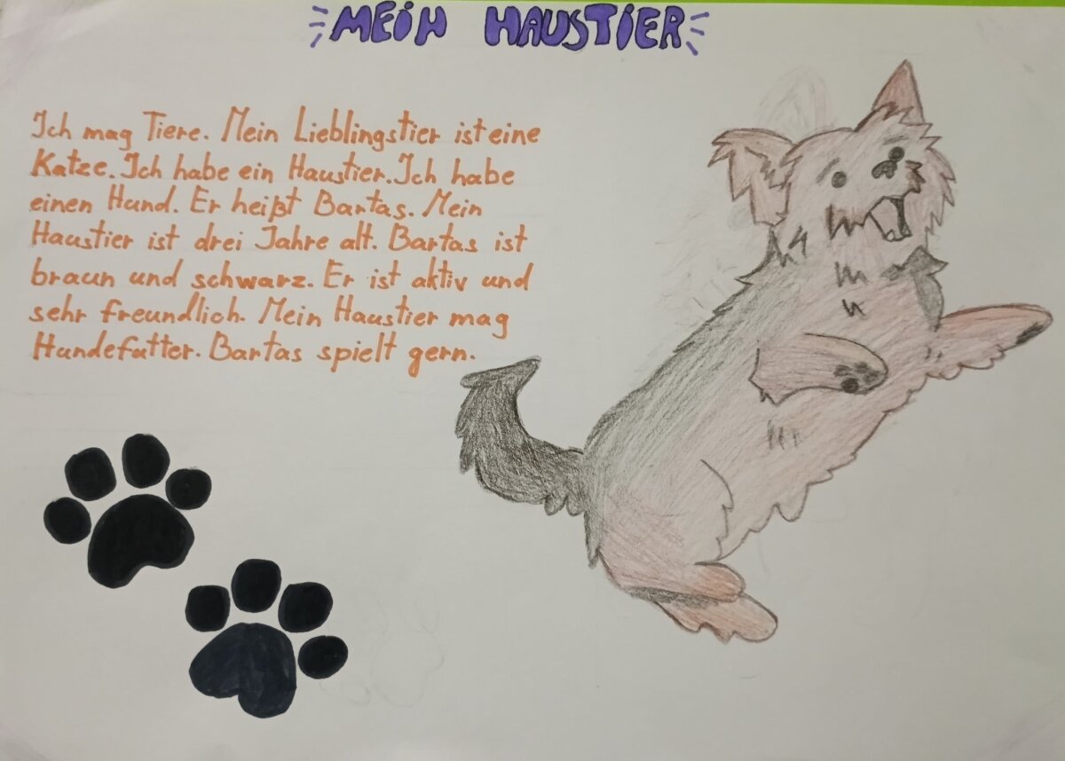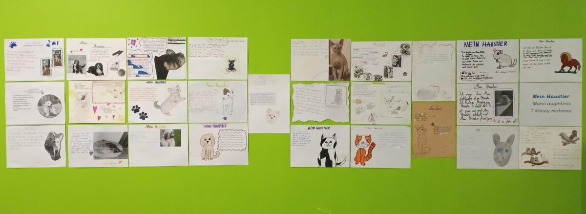 Spalio pradžioje mūsų progimnazijos septintokai, besimokantys vokiečių kalbos, paruošė miniprojektus apie savo augintinius ir pasidalino savo pristatymais su mokyklos bendruomene, taip prisidėdami prie Gyvūnų gerovės mėnesio renginių. Pasaulinę gyvūnų dieną (spalio 4 d.) Jonavos rajono savivaldybė paskelbė Gyvūnų gerovės mėnesį ir kvietė pasidalinti savo augintinių nuotraukomis bei trumpai juos apibūdinti. Mokiniai susiejo savo vokiečių kalbos žinias su atjauta ir pagalba beglobiams gyvūnams, nes mokykloje taip renkama parama jais besirūpinančioms organizacijoms.