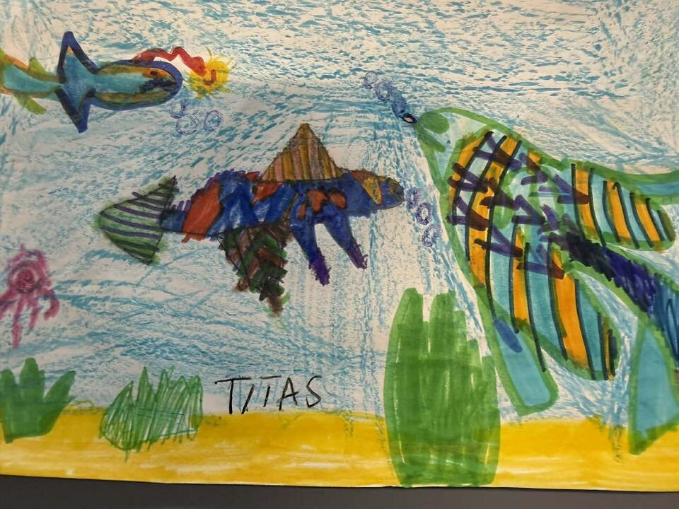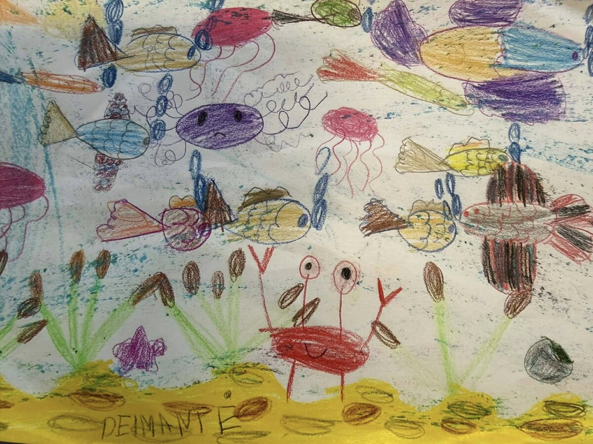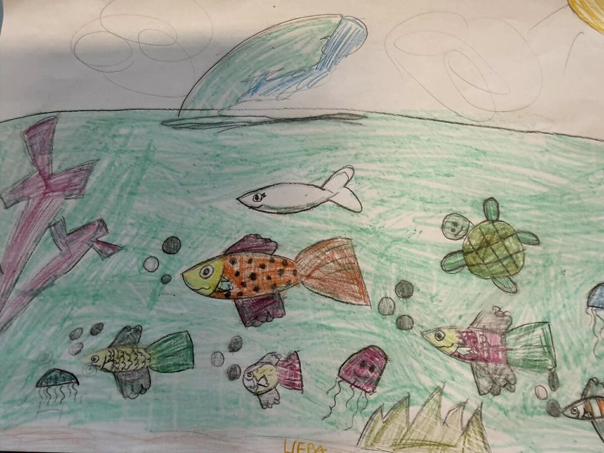 Mokinukams taip pat buvo skirta dailės užduotis – nupiešti švarų jūros dugną, kuriame gyvūnai gali gyventi saugiai ir laimingai. Ši veikla skatino vaikus kūrybiškai išreikšti savo supratimą apie švarią aplinką ir jos svarbą gyvajai gamtai.