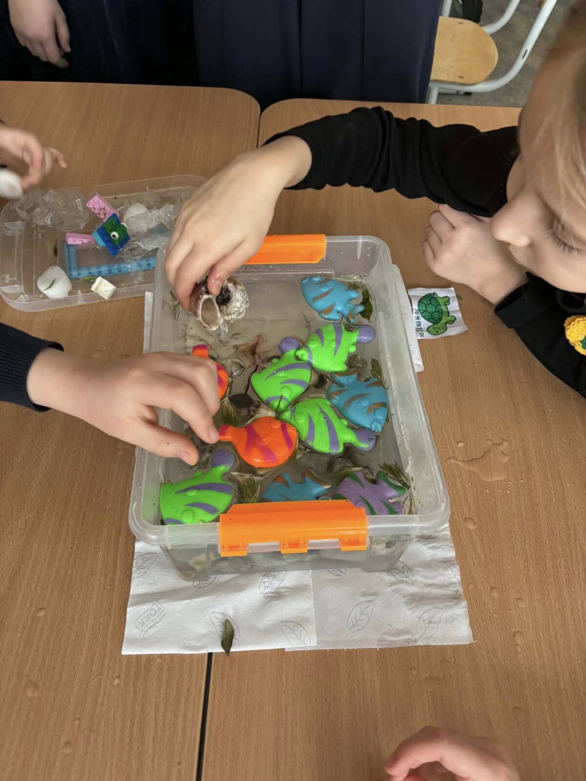 Žalioji komanda ne tik skatino diskusijas, bet ir organizavo STEAM veiklas. Pradinių klasių mokiniai, dirbdami grupėse, kūrė mini vandenynus – naudojo vandenį, kriaukles, akmenukus, žuvytes bei vandens augalus. Kūrybinė veikla padėjo mokiniams geriau suprasti vandens ekosistemą ir žmogaus veiklos poveikį gamtai.