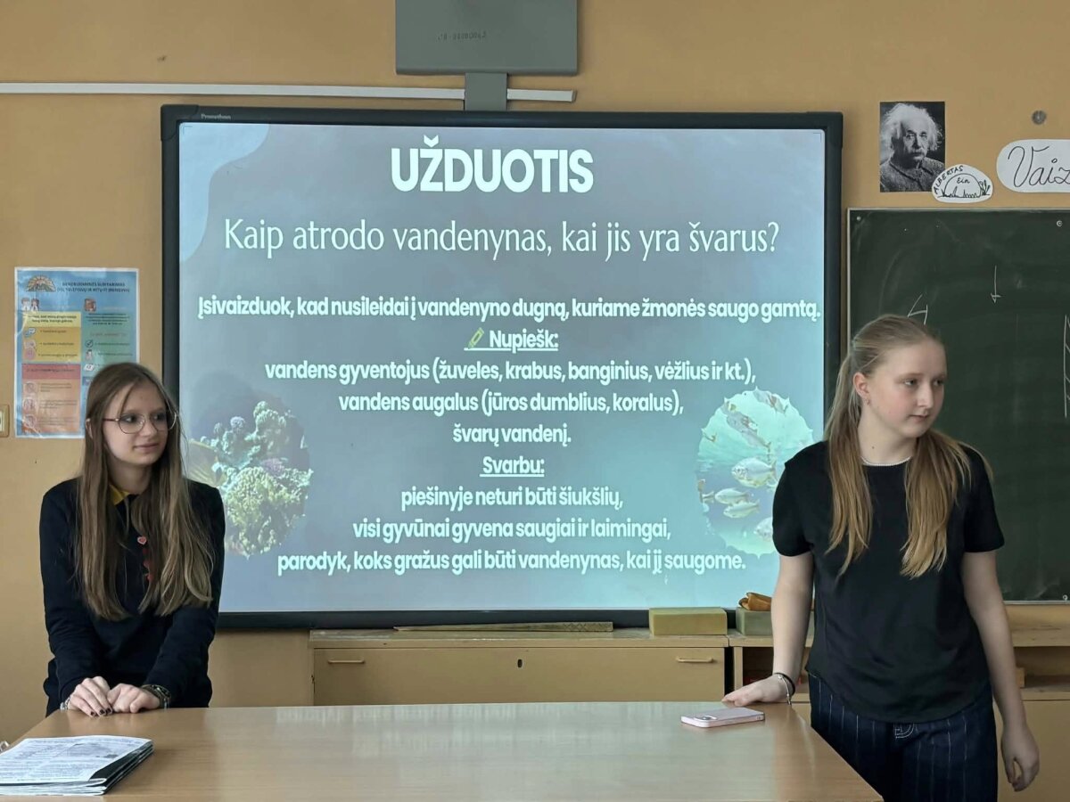 Pamokėlių metu mokiniai diskutavo, kodėl svarbu nešiukšlinti ir saugoti vandens telkinius. Buvo aptarta, kad net ir maža išmesta šiukšlė dažnai nukeliauja į upes, jūras ar vandenynus, kur tampa pavojumi gyvūnams. Plastikas ir kitos atliekos patenka į žuvų bei kitų vandens gyvūnų organizmus, o vėliau per maisto grandinę gali pasiekti ir žmogaus lėkštę.