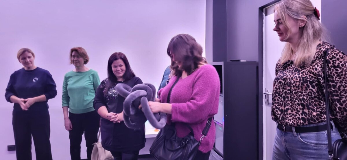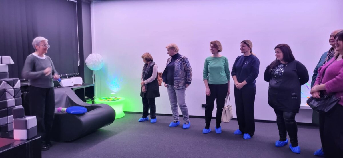 Be kūrybinių dirbtuvių, kurios buvo organizuotos mokiniams, mokinius atlydėjusioms mokytojoms ir pagalbos mokiniui specialistėms sudaryta galimybė susipažinti su progimnazijos sensorine erdve, pritaikyta įtraukiajam ugdymui.