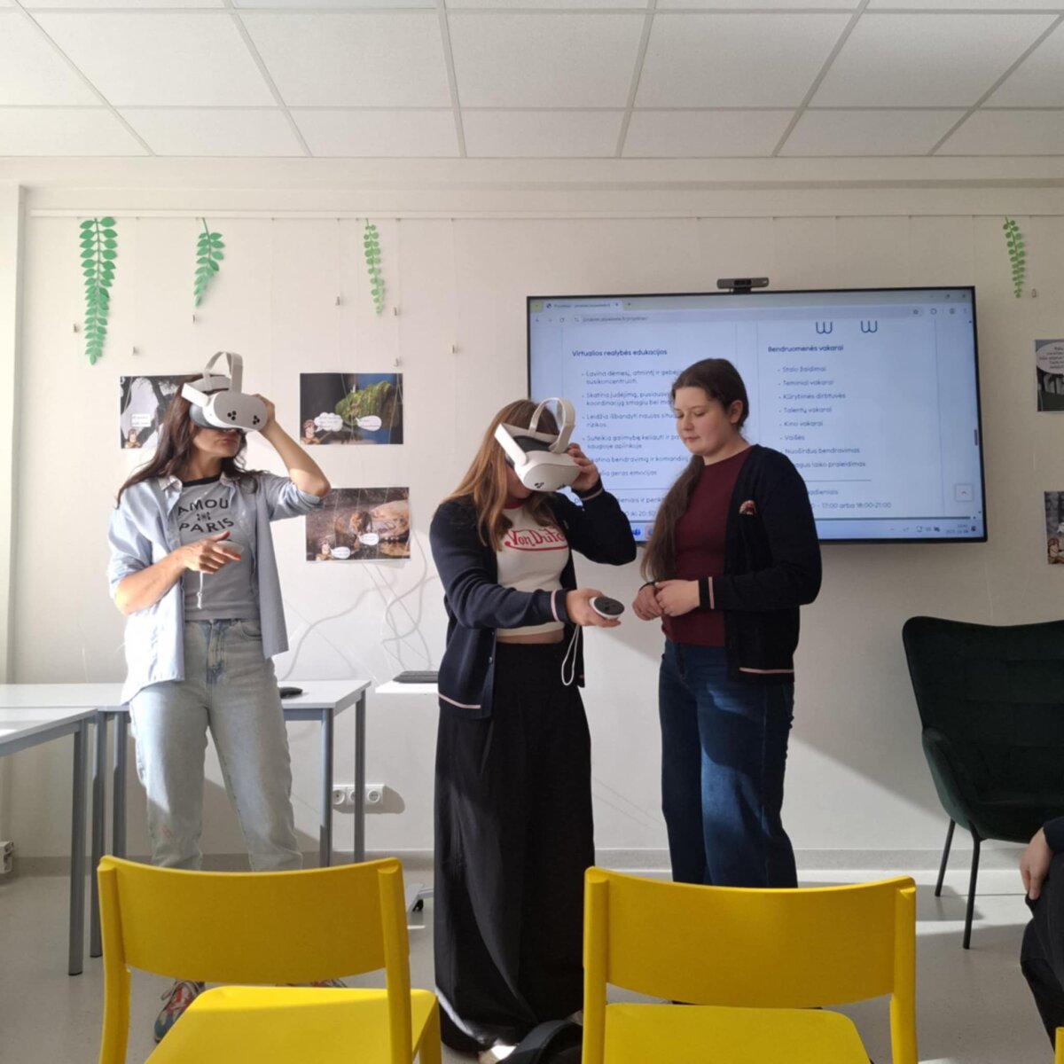 Spalio 8 d. progimnazijoje vyko susitikimas su Labdaros paramos fondo ,,Jonaviečiai padeda“ vadove Gerda Mocke. Šis fondas įgyvendina ES finansuojamą nemokamą projektą, skirtą senjorams, žmonėms su negalia ir tiems, kurie neturi daug galimybių pramogauti, tačiau nori įsitraukti į įvairias veiklas. Susitikimo metu mokyklos aštuntokai susipažino su projekto siūlomomis veiklomis - žirgų terapija, bendruomenės vakarais, neuroedukacija ir kitomis iniciatyvomis, kurios padeda patirti bendrystę, atrasti naujus pomėgius ir turiningai leisti laiką. Taip pat buvo pristatytos savanorystės galimybės. Sužinojome, kaip galėtume prisidėti prie šių veiklų organizavimo ir pagalbos dalyviams. Gavome progą patys išbandyti virtualios realybės akinius bei sužinoti, kaip mokyti kitus jais naudotis. Susitikimas buvo naudingas ir įkvepiantis – suteikė daug žinių apie bendruomenės veiklas ir galimybes prisidėti prie prasmingo projekto.