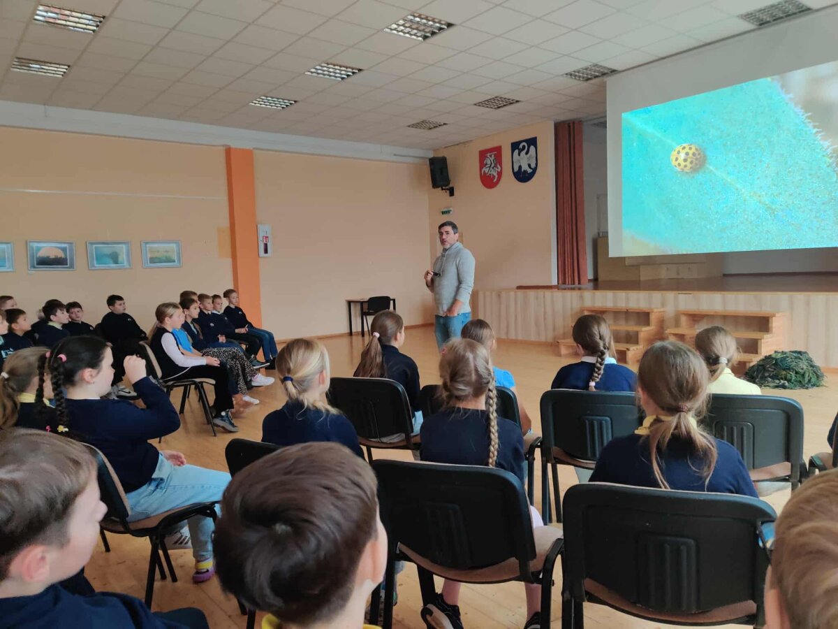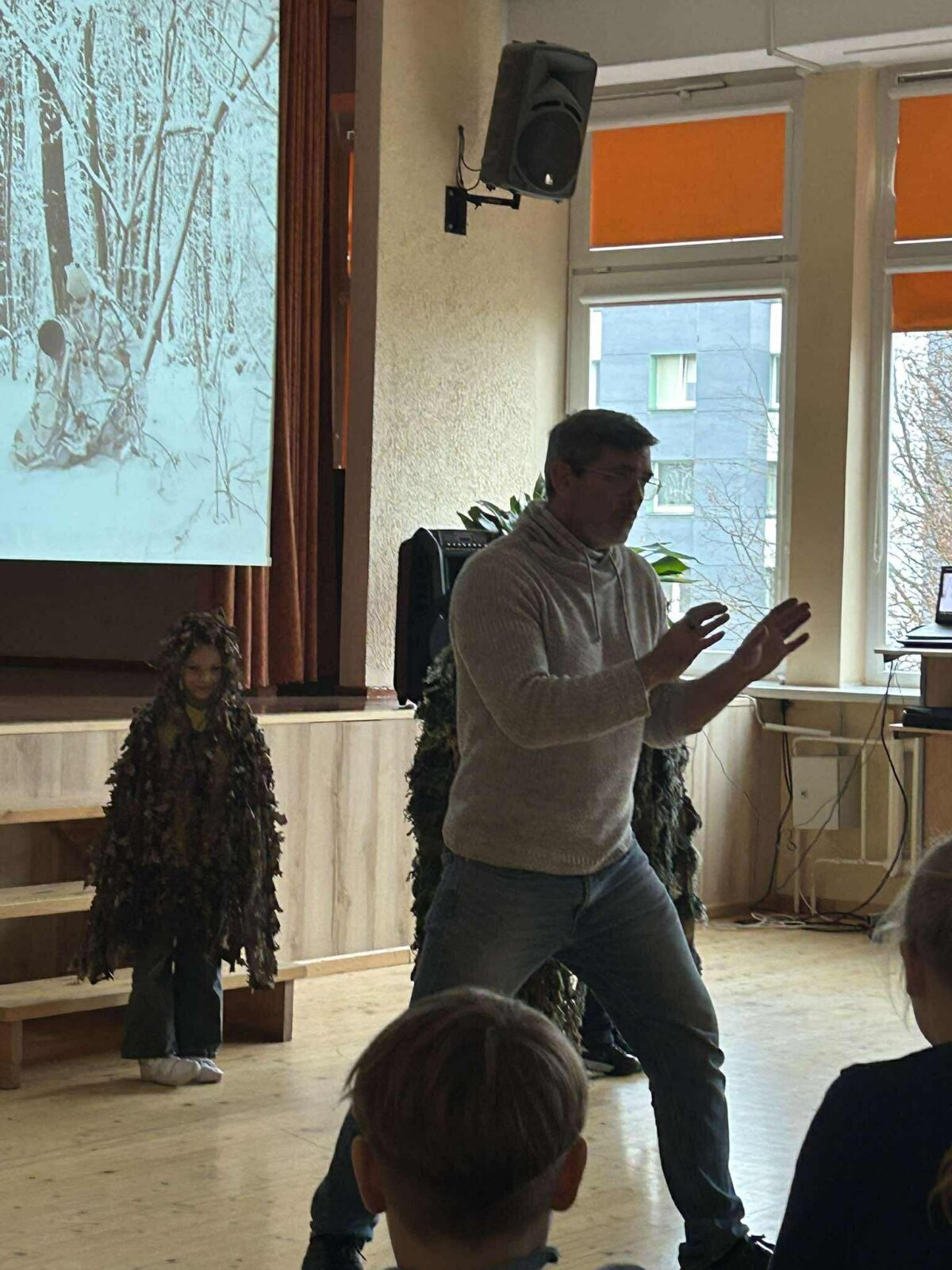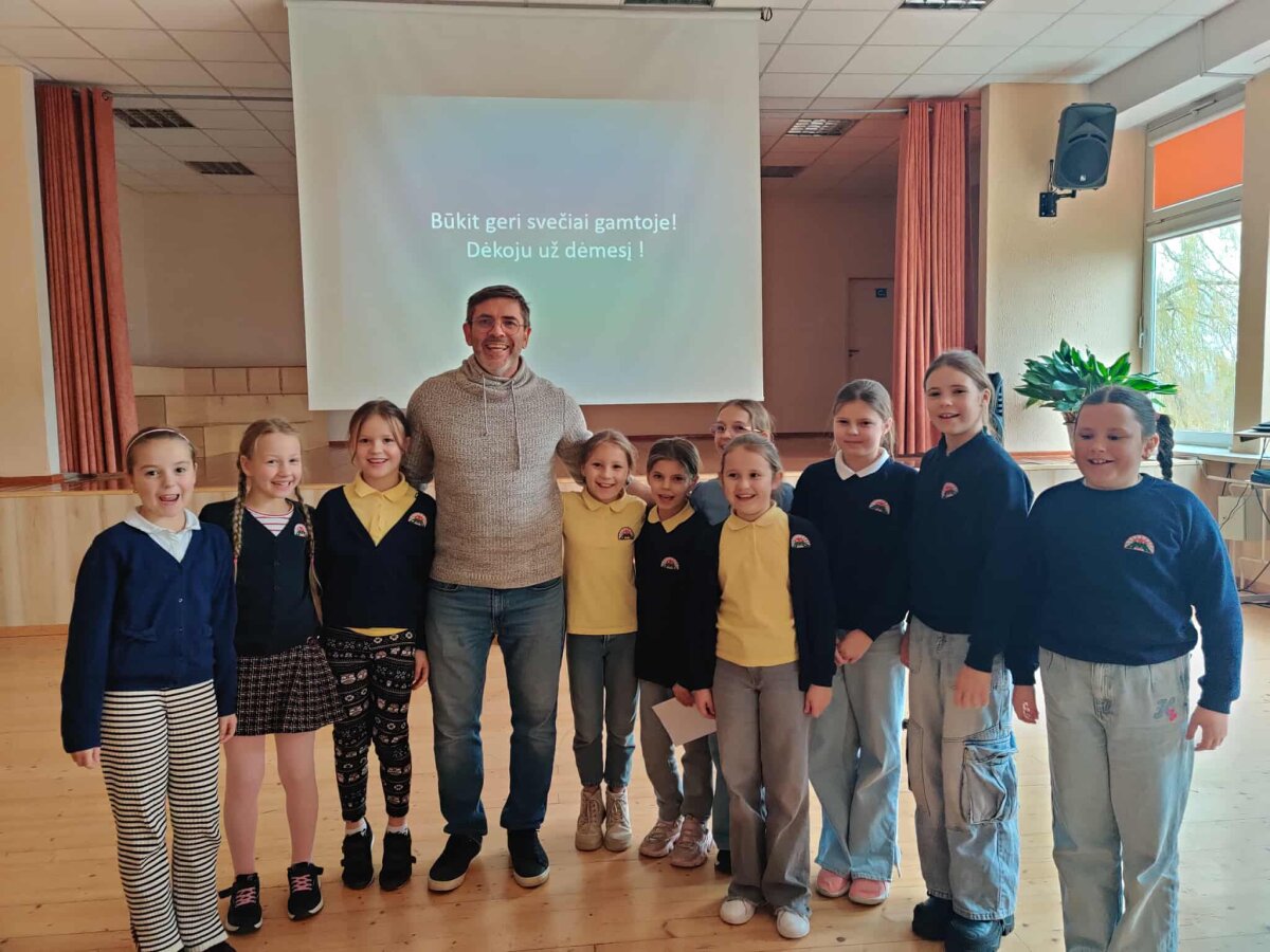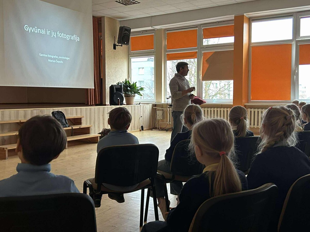 Lapkričio 19 d. progimnazijos 1–4 klasių mokiniai turėjo išskirtinę galimybę susitikti su žinomu gamtininku, rašytoju, fotografu bei laidų apie gamtą vedėju Mariumi Čepuliu. Susitikimo metu mokiniai buvo įtraukti į gyvą, energingą ir humoro nestokojantį pasakojimą apie Lietuvos (ir ne tik) gamtą.