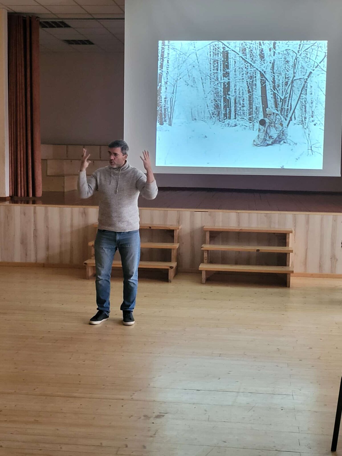 Progimnazijoje – įkvepiantis 1–4 klasių mokinių susitikimas su gamtininku Mariumi Čepuliu