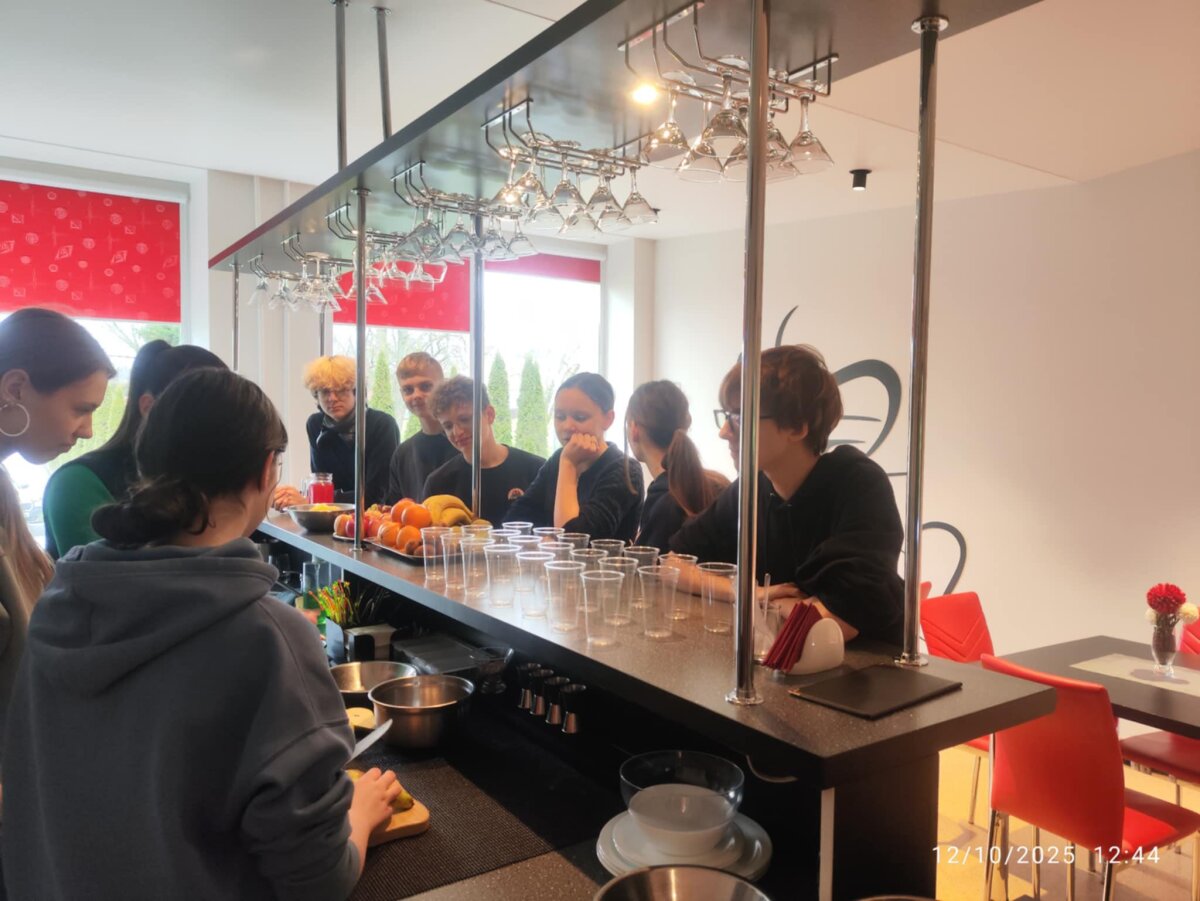 Gruodžio 10 dieną 8b klasės mokiniai svečiavosi Jonavos politechnikos mokykloje. Mokiniai dalyvavo vaisių salotų gaminimo procese ir dekoravo kalėdinius sausainius. Taip pat pritaikė matematikos žinias skaičiuodami, kiek kainavo salotų ir sausainių pagaminimas, pademonstravo anglų kalbos žinias. Kiekvienas parsinešė sausainių ir į savo namus. Ačiū už įspūdžius ir patirtį.