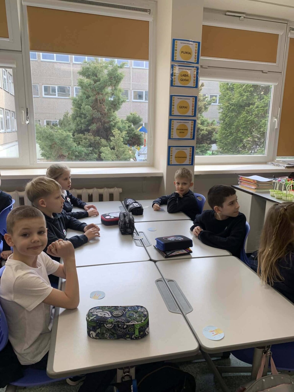 Prieš pat pavasario atostogas mūsų mokykloje vyko ypatinga pamoka – 5b klasės mokiniai tapo mokytojais ir vedė veiklas 1b klasės mokiniams.