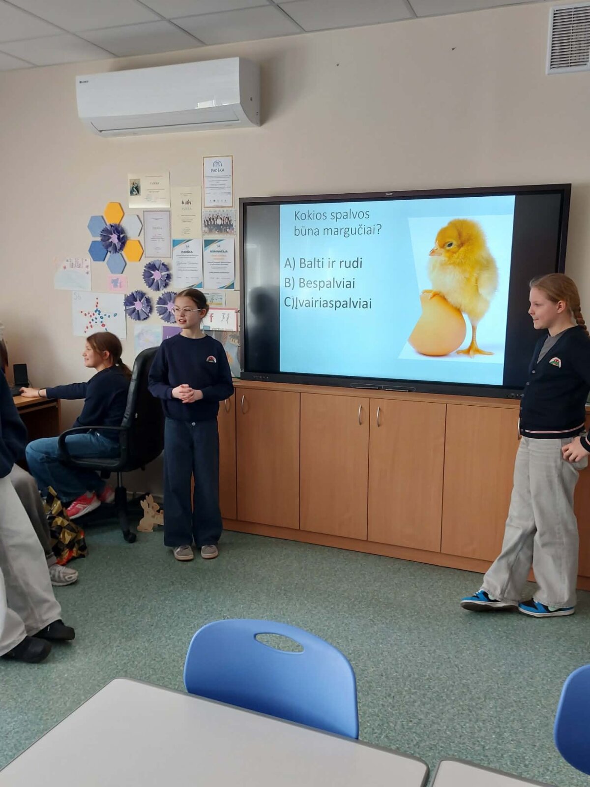 Vyresnieji mokiniai atsakingai ir kūrybiškai parengė užduotis: kartu su mažaisiais prisiminė šv. Velykų papročius ir tradicijas, pakvietė į įtraukiančią viktoriną, organizavo margučių ridenimo varžybas bei velykinių simbolių slėpimo ir paieškos žaidimą.