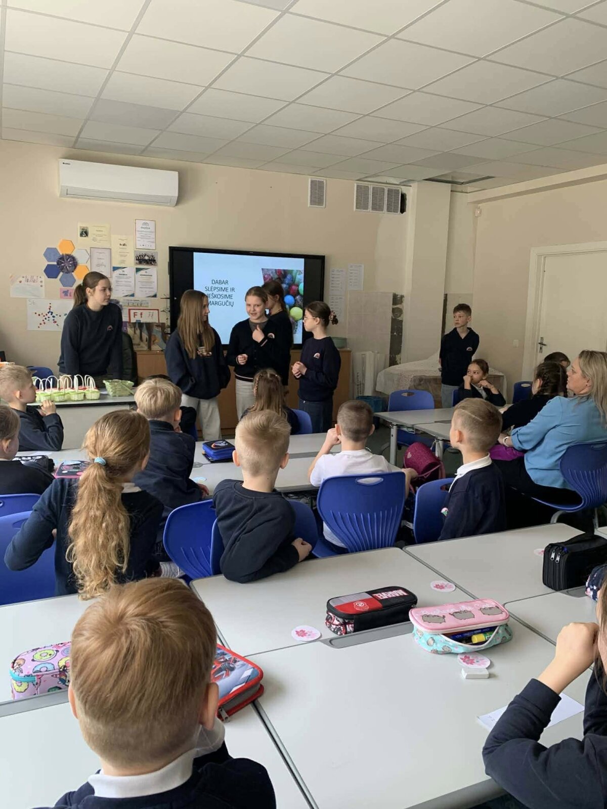 Pamokos pabaigoje visų laukė saldi staigmena – kiekvienas mokinys gavo po šventinį saldumyną.