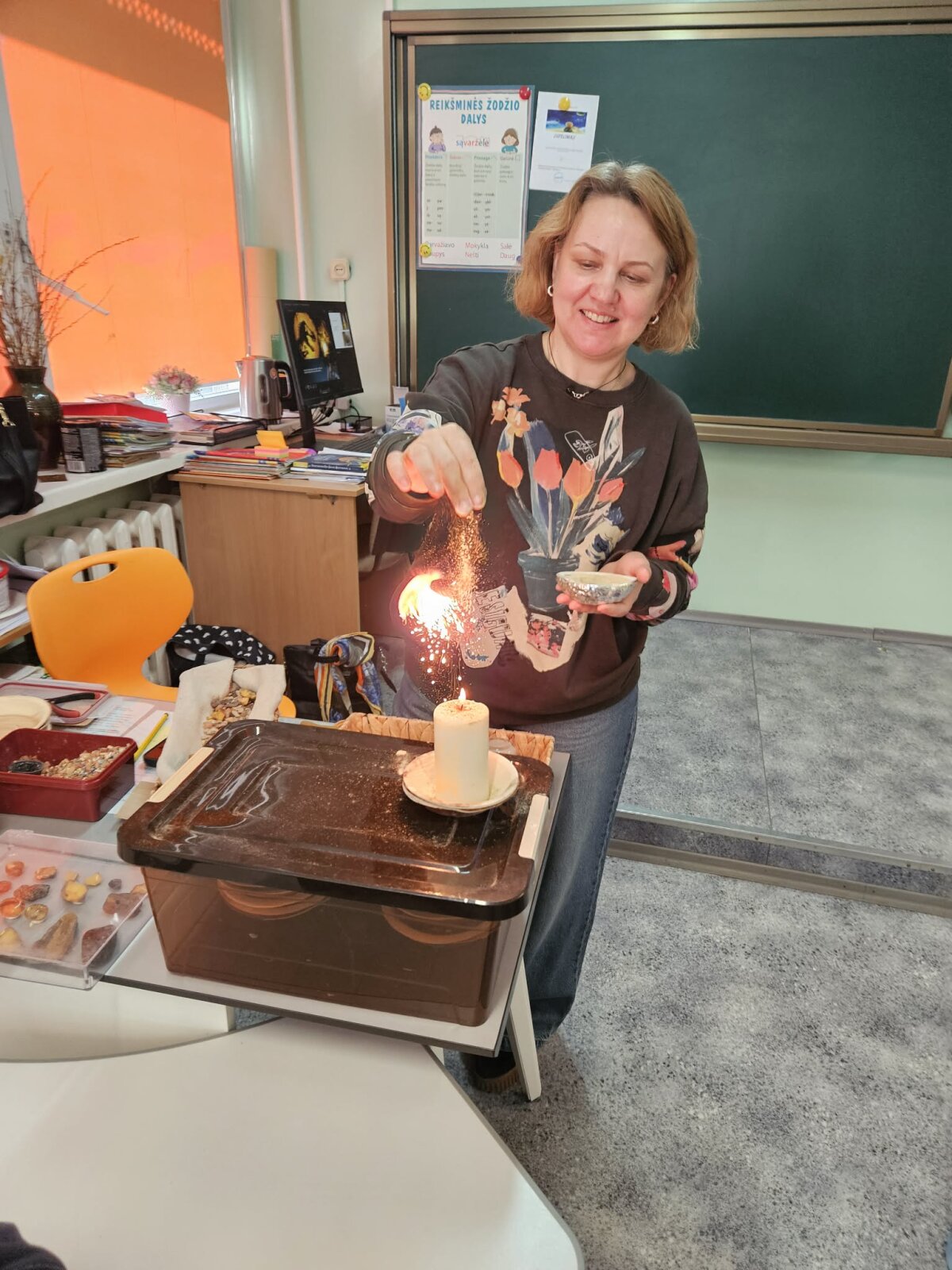 Lengvai ir įdomiai, pasitelkiant legendą apie Jūratę ir Kastytį, mokiniai sužinojo, kaip atsirado gintaras. Jie ne tik klausėsi pasakojimo, bet ir patys tyrinėjo: lygino gintaro svorį, šilumą, kvapą, atliko eksperimentus, bandė išsiaiškinti, ar gintaras iš tiesų plūduriuoja sūriame vandenyje.
