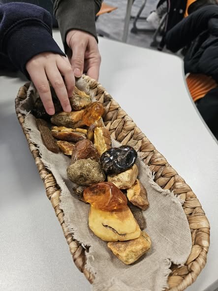 Balandžio 24 d. 2a, 3c ir 4a klasių mokiniai leidosi į nuotaikingą pažintį su Baltijos gintaru – edukacija vyko mūsų mokykloje, į kurią atvyko edukatorė.