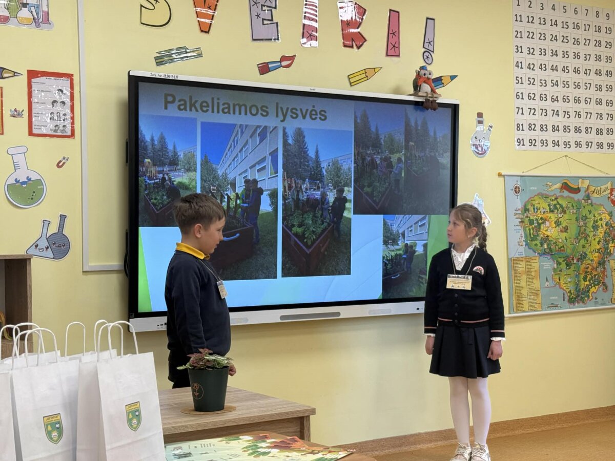 Šioje konferencijoje progimnazijai garbingai atstovavo 2b klasės mokiniai Liepa ir Motiejus. Jaunieji pranešėjai pristatė temą, kuri aktuali kiekvienam iš mūsų – mokiniai supažindino renginio dalyvius su progimnazijos žaliosiomis erdvėmis bei dalijosi gerąja patirtimi, kaip mūsų bendruomenės nariai mokosi kurti tvariai.